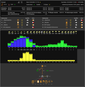 - die Prognosedaten, Wetterdaten, Verbraucherplanungen und die aktuellen Energieflüsse werden in umfangreich anpassbaren integrierten Grafiken dargestellt